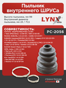 Пыльник внутреннего ШРУСа LYNXauto PC-2056. Характеристики: Subaru, Субару, Forester(SH) 2.5 08> / Impreza(GD/GH) 1.6-2.5 00> / Legacy IV-V 2.0-2.5 03> / XV 1.6-2.0 17>, Suzuki, Сузуки.