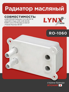 Радиатор масляный LYNXauto RO-1060. Для FORD ФОРД 2.0-2.4 D Mondeo(Мондео) III 00-07/Transit(Транзит)/Tourneo 00-07, JAGUAR Ягуар X-Type 2.0D-2.2D 03-09, LAND ROVER ЛэндРовер Defender 2.2-2.4D 07-16