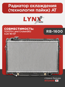 Радиатор охлаждения (технология пайки) AT LYNXauto RB-1600. Для: TOYOTA Land Cruiser(80) 4.2D 90-97