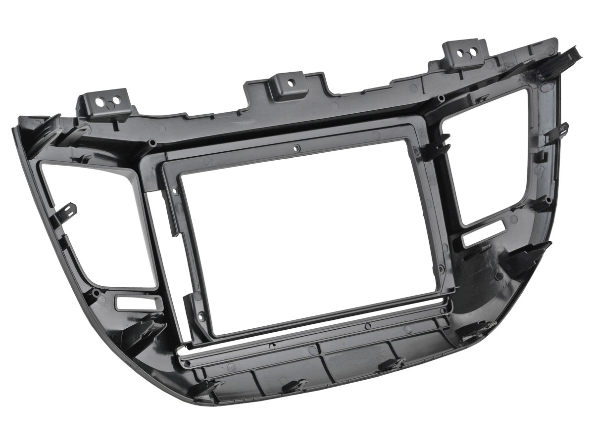 Для автомобиля Hyundai Tucson 2015–2018 года выпуска с чёрной отделкой салона подходит переходная рамка Incar RHY-FC133. Она позволяет установить 9-дюймовую магнитолу вместо штатной системы.