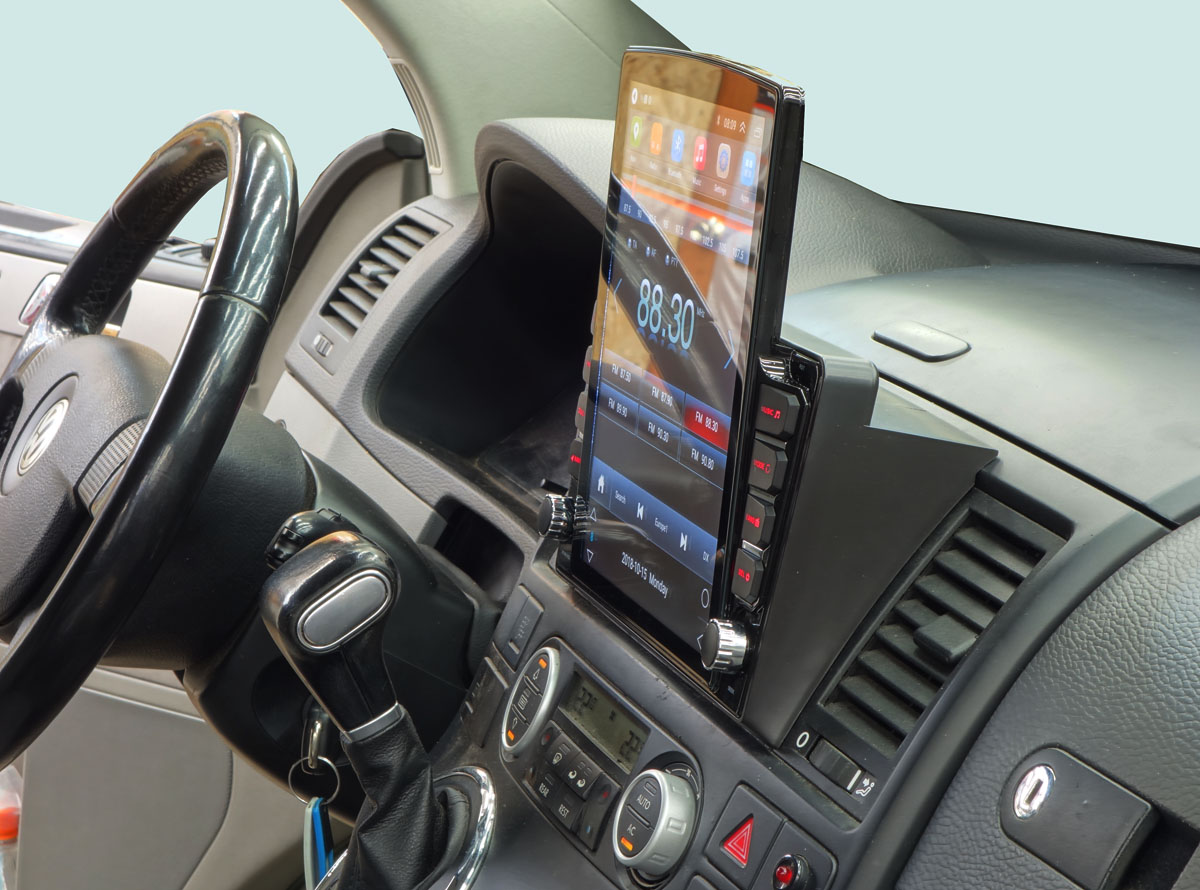 Переходная рамка Incar RVW-FC589 предназначена для установки 9-дюймовой магнитолы с монтажным размером 230:220×130 мм вместо штатной мультимедиа в автомобили Volkswagen Multivan 2008–2015 годов выпуска.