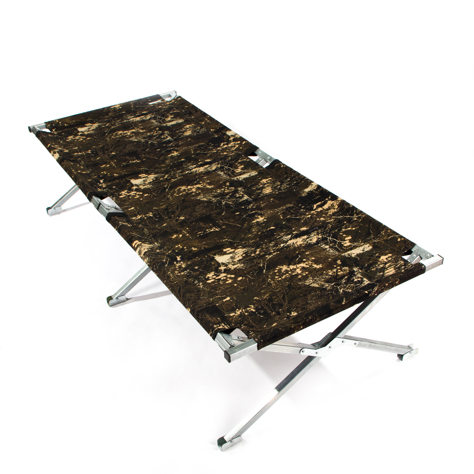 Раскладушка туристическая «Следопыт» в чехле – отличный выбор для тех, кто любит комфорт в походе, на рыбалке или на даче. Усиленная металлическая конструкция. Ткань GERDA CAMO - смесовая камуфляжная ткань из высококачественного хлопка и полиэстера, с водоотталкивающей пропиткой для защиты от дождя и ветра. В сложенном виде достаточно компактна и не занимает много места при транспортировке и хранении. ХАРАКТЕРИСТИКИ: • Вес – 10,4 кг. • Размер – 1850*750*400 мм. • Каркас – труба оцинкованная 25х25х1,2 мм. • Максимальная нагрузка – 300 кг. • Размер в чехле – 930*190*110 мм.