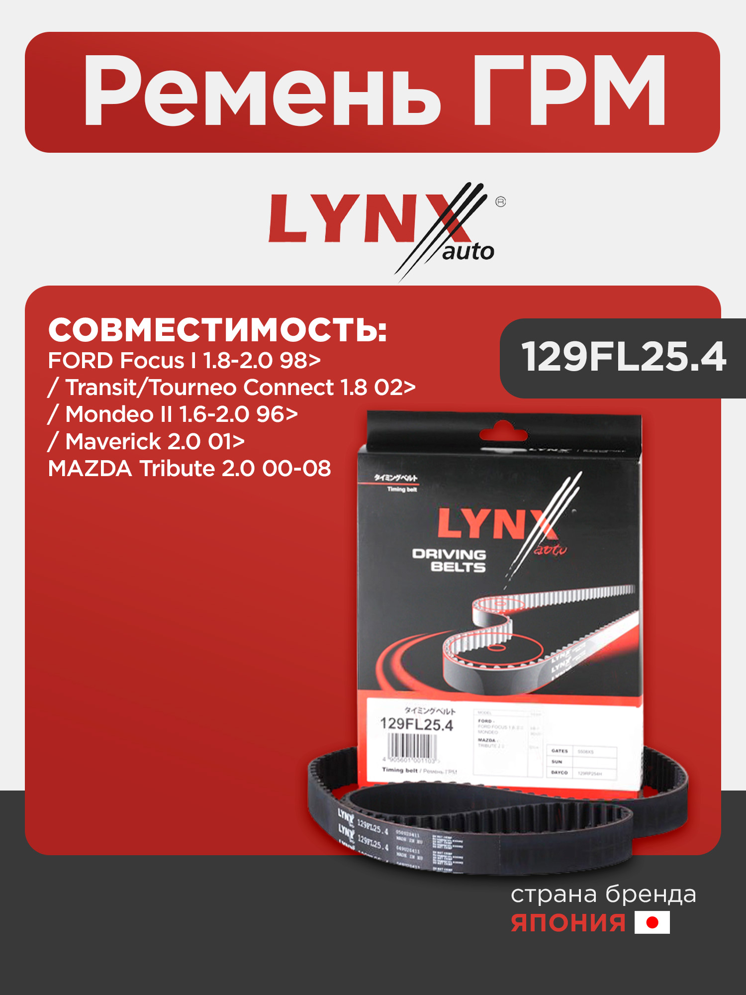 Ремень ГРМ LYNXauto 129FL25.4. Для: FORD Focus I 1.8-2.0 98> / Maverick 2.0 01> / Mondeo II 1.6-2.0 96> / Transit/Tourneo Connect 1.8 02>, MAZDA Tribute 2.0 00-08