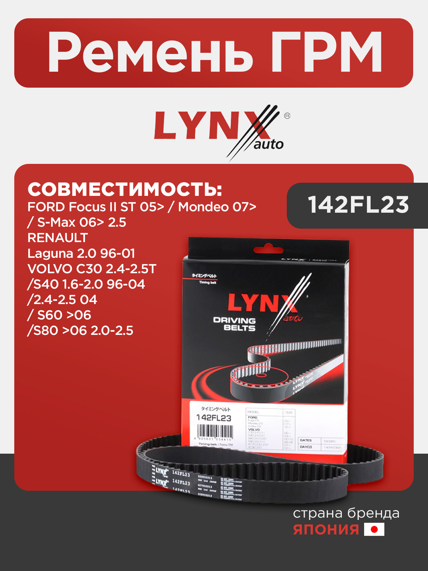 Ремень ГРМ LYNXauto 142FL23. Для: FORD Focus II ST 05> / Mondeo 07> / S-Max 06> 2.5, RENAULT Laguna 2.0 96-01, VOLVO C30 2.4-2.5T/S40 1.6-2.0 96-04/2.4-2.5 04> / S60 >06/S80 >06 2.0-2.5