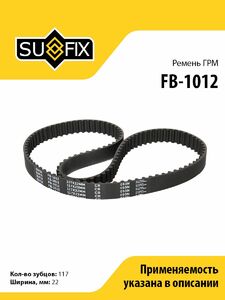 Ремень ГРМ SUFIX FB-1012. Применение: FORD Focus I-II 1.4-1.6 98> / Mondeo IV 1.6 02> / B-MAX 1.4 -1.6 12> / C-Max I-II 1.6 10> / Fiesta IV-V 1.25-1.6 96-08 / Fusion 1.25-1.6 02>, MAZDA 2(DY) 1.25-1.6 03>, VOLVO S40 II 1.6 05>.