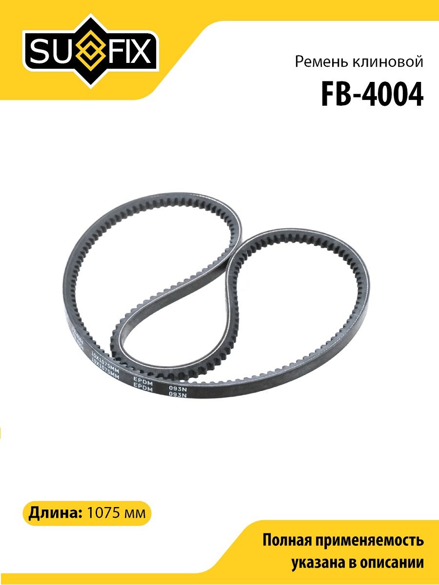 Ремень клиновой SUFIX FB-4004. Применение: HYUNDAI Terracan 2.5TD 01>, IVECO Daily 2.5TD 89-96, MITSUBISHI L200 96-05/Pajero 91-93/Pajero Sport 98> 2.5TD, VW Transporter 4 2.4D-2.5 >92.