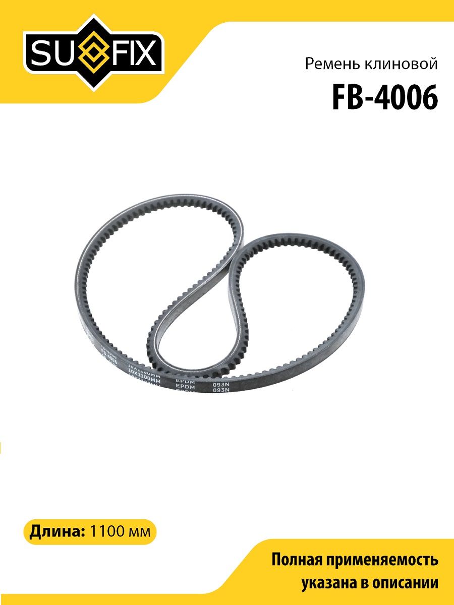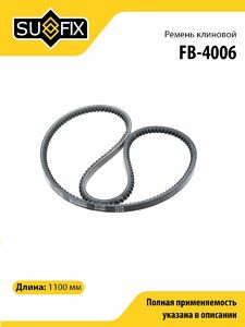 Ремень клиновой SUFIX FB-4006. Применение: HYUNDAI Galloper/H-1 2.5-2.6 / Porter 94-04 / Starex 2.5TD 97-02, MITSUBISHI L300 2.5D 94-99 / Space Gear 2.5TD 95-00.