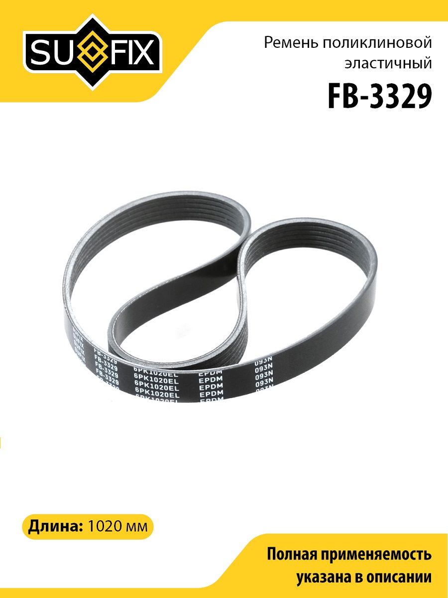 Ремень поликлиновой эластичный SUFIX FB-3329. Применение: LADA Granta 1.6 10-21.