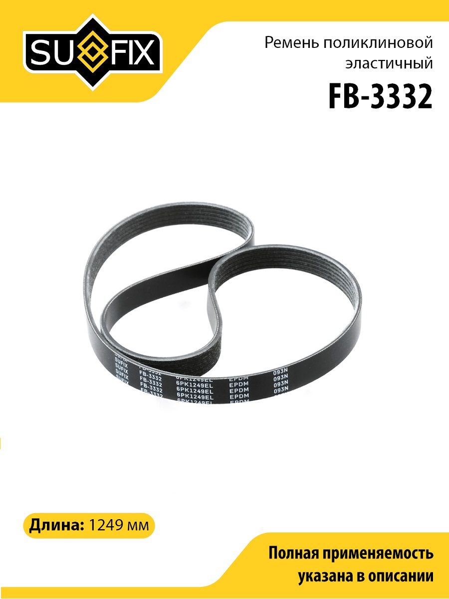 Ремень поликлиновой эластичный SUFIX FB-3332. Применение: FORD Focus II 1.8-2.0 04> / C-Max 1.8-2.0 07-10, VOLVO C30 1.8-2.0 04-10 / S40 II 1.8-2.0 04-10.