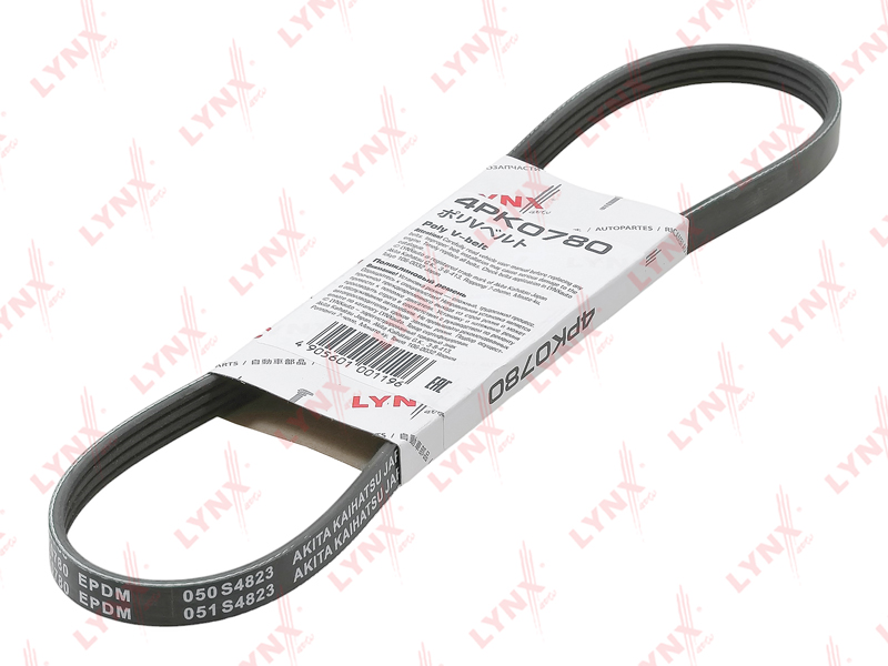Ремень поликлиновой (EPDM) LYNXauto 4PK0780 для BMW 3(E36)/5(E34)/7(E38) 2.5D,HONDA Civic 1.3-1.6 91-00,HYUNDAI Getz 1.1 05>/i10 08>,KIA Picanto 1.0-1.1 04>,MAZDA RX8 03>,MITSUBISHI Carisma 1.8 97-06/Lancer 1.6 92-03,VOLVO S40 1.8 98-03