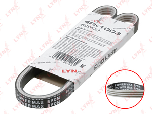 Ремень поликлиновой (EPDM,Power Max) LYNXauto 4PK1003 для FIAT Punto 1.6 94-97,MAZDA 323 1.3-1.8 >04,MITSUBISHI Pajero 3.5 94-00,SUZUKI Baleno 1.3-1.6 96-02