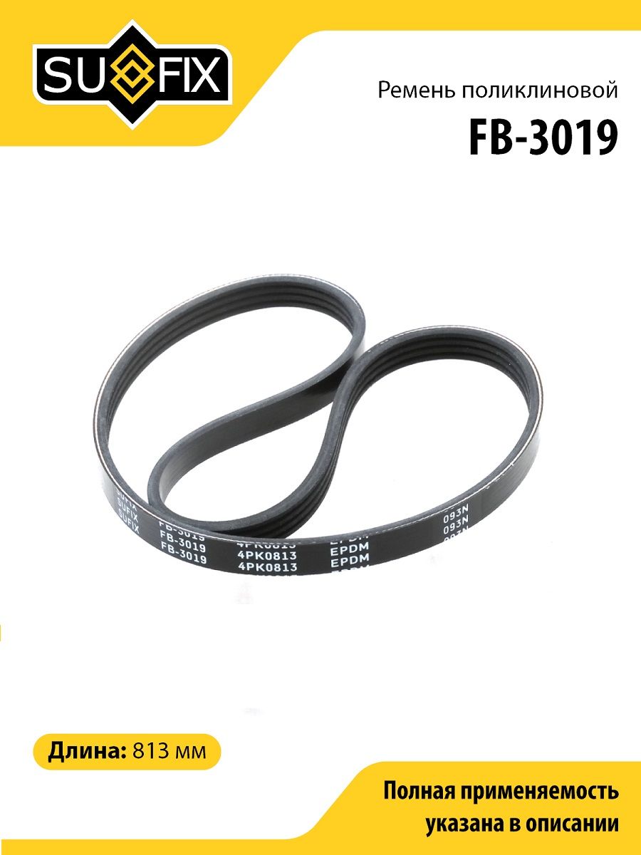Ремень поликлиновой SUFIX FB-3019. Применение: GEELY CK 05> / MK 08>, GREAT WALL PERI 08>, LIFAN 320 | SMILY 08> /520 | BREEZ 06> / 530 | CELLIYA 13> / 620 | SOLANO 08> / X50 14>.