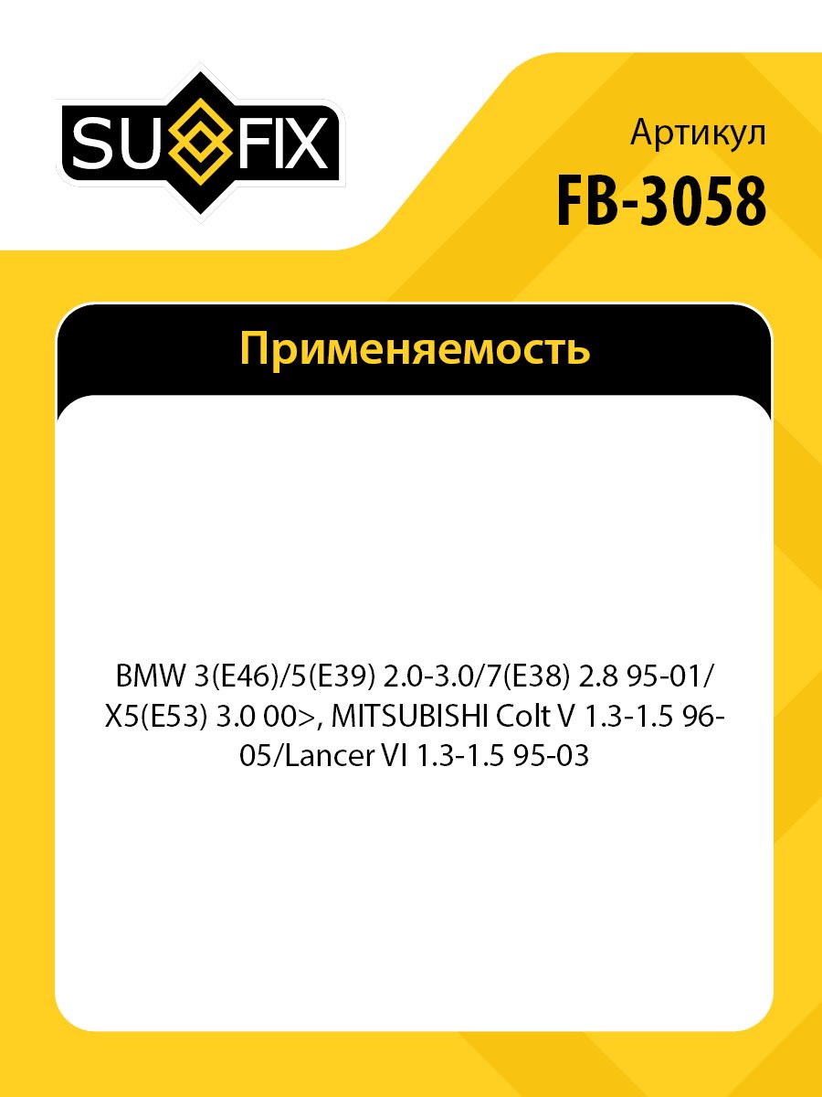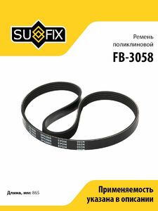 Ремень поликлиновой SUFIX FB-3058. Применение: BMW 3(E46)/5(E39) 2.0-3.0/7(E38) 2.8 95-01/X5(E53) 3.0 00>, MITSUBISHI Colt V 1.3-1.5 96-05/Lancer VI 1.3-1.5 95-03 .