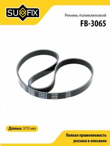 Ремень поликлиновой SUFIX FB-3065. Применение: ALFA ROMEO 145/146/155 1.9TD 94-99, CHEVROLET Lanos 1.4-1.5 05>, OPEL Vectra A 1.6 >95, TOYOTA Avensis 1.6-1.8 97-00/Carina E 1.6-1.8 >97/Corolla 1.6 >00.