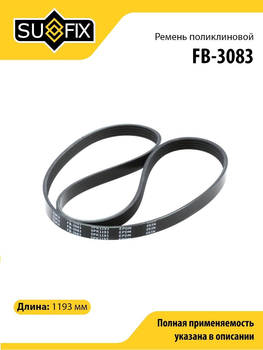 Ремень поликлиновой SUFIX FB-3083. Применение: LAND ROVER FreeLander 1.8 00>, MITSUBISHI Lancer 1.5 08>, TOYOTA Corolla 2.0D 92-00/RAV 4 2.0D 01> / Yaris 1.4D 01>.