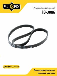 Ремень поликлиновой SUFIX FB-3086. Применение: CITROEN Berlingo 1.6 00>, MITSUBISHI Colt 1.1-1.5 04>, PEUGEOT 306 1.6 94-00, SKODA Fabia 1.0 1.4 99-02 / Felicia 1.9D 95>, TOYOTA Avensis 2.0D 99-03 / Picnic 2.0-2.2D 06-01, VW Caddy 1.9D 96-00 / Polo 1.7D-1.9D 94-99.
