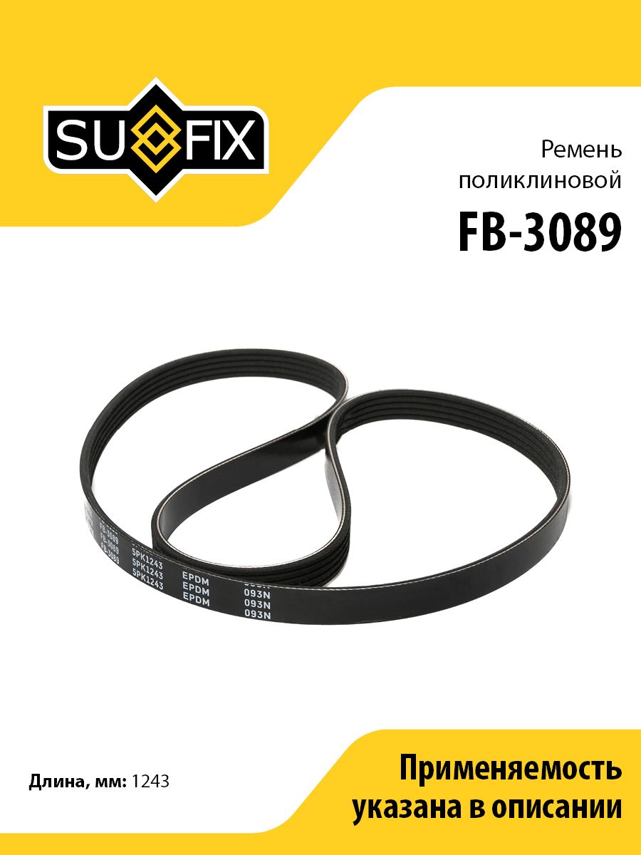 Ремень поликлиновой SUFIX FB-3089. Применение: HYUNDAI Sonata(Y2/Y3) 3.0 91-98, TOYOTA Avensis Verso / Picnic 2.0D 01-05 / Estima/Previa II 2.0D 01-06.