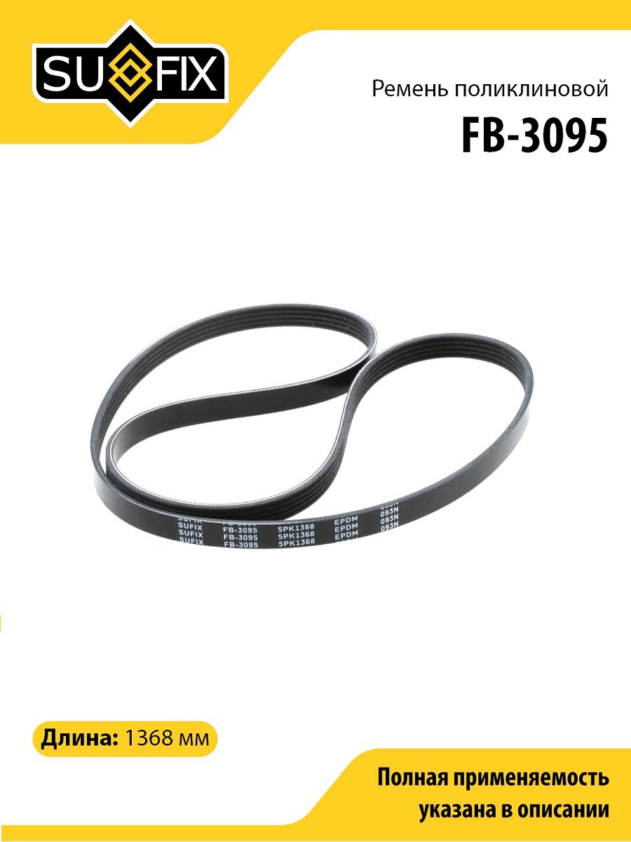 Ремень поликлиновой SUFIX FB-3095. Применение: MITSUBISHI Galant 2.0 96-00, OPEL Combo 1.4 04> / Corsa 1.2-1.4 03> / Meriva 1.4 16V 04-10.