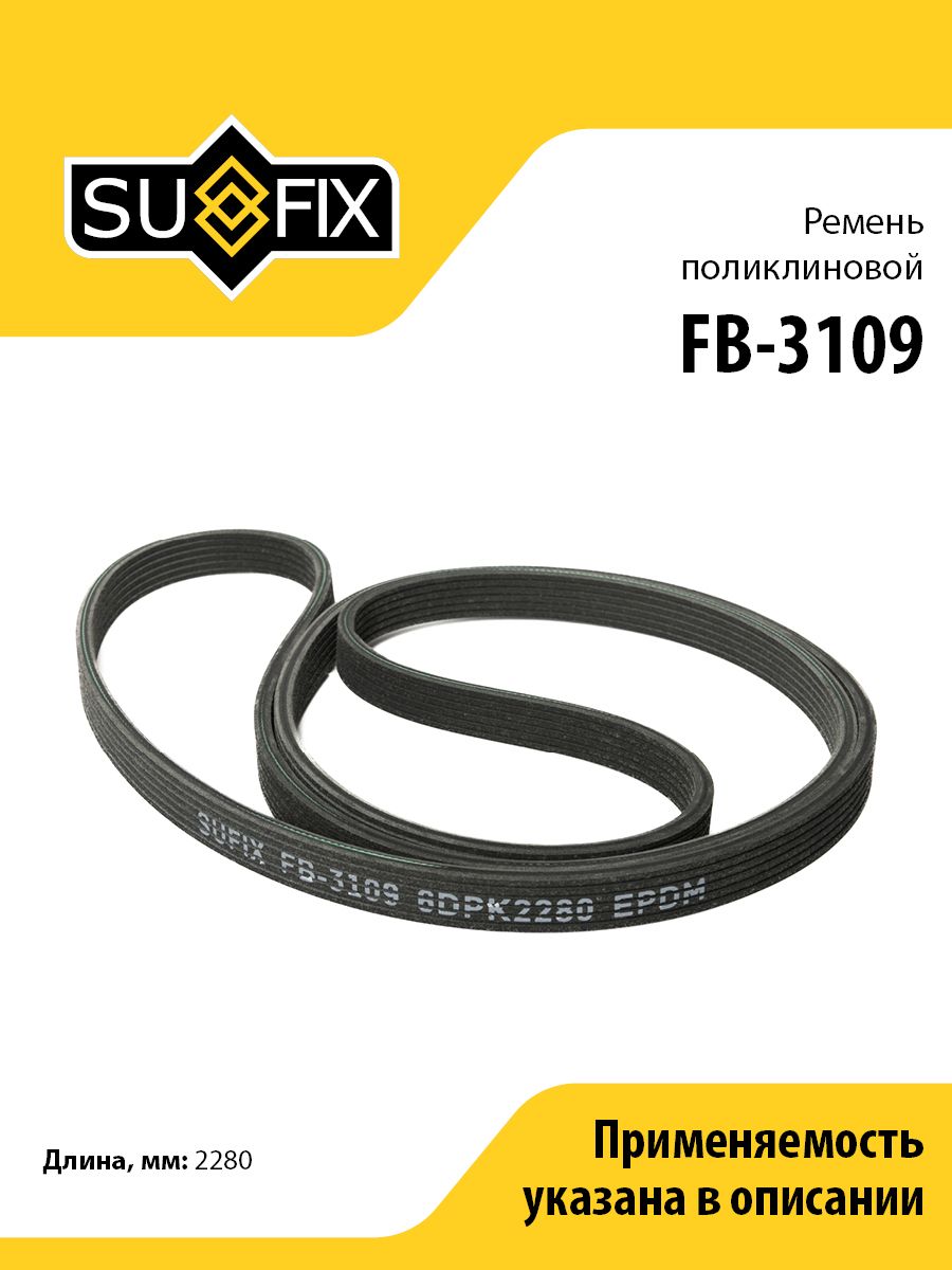 Ремень поликлиновой SUFIX FB-3109. Применение: VOLVO S60 2.0 10> / XC60 2.0 09>, FORD Mondeo IV-V 2.0 10> / Galaxy 2.0 10-15 / S-max 10-14.