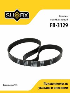 Ремень поликлиновой SUFIX FB-3129. Применение: FIAT Bravo 1.9D 95-01/Punto 1.7TD 94-99, HONDA Civic VII 1.7 01-05.