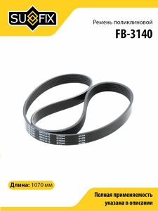 Ремень поликлиновой SUFIX FB-3140. Применение: CITROEN C4 1.6 16V 04> / Evasion 2.0 94-02/Xsara 1.8 97-00/ZX 91-97, FIAT Ulysse 94-02, PEUGEOT 307/405, VW Golf/Caddy 1.4-1.6 95-04, Polo 95>.