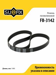 Ремень поликлиновой SUFIX FB-3142. Применение: AUDI A2/A3 1.4-1.6 03>, BMW 5(E60) M5, SCODA Octavia/Fabia 1.4-1.6 06>, VW Eos/Golf V/Touran 1.4-1.6 Fsi 03>.