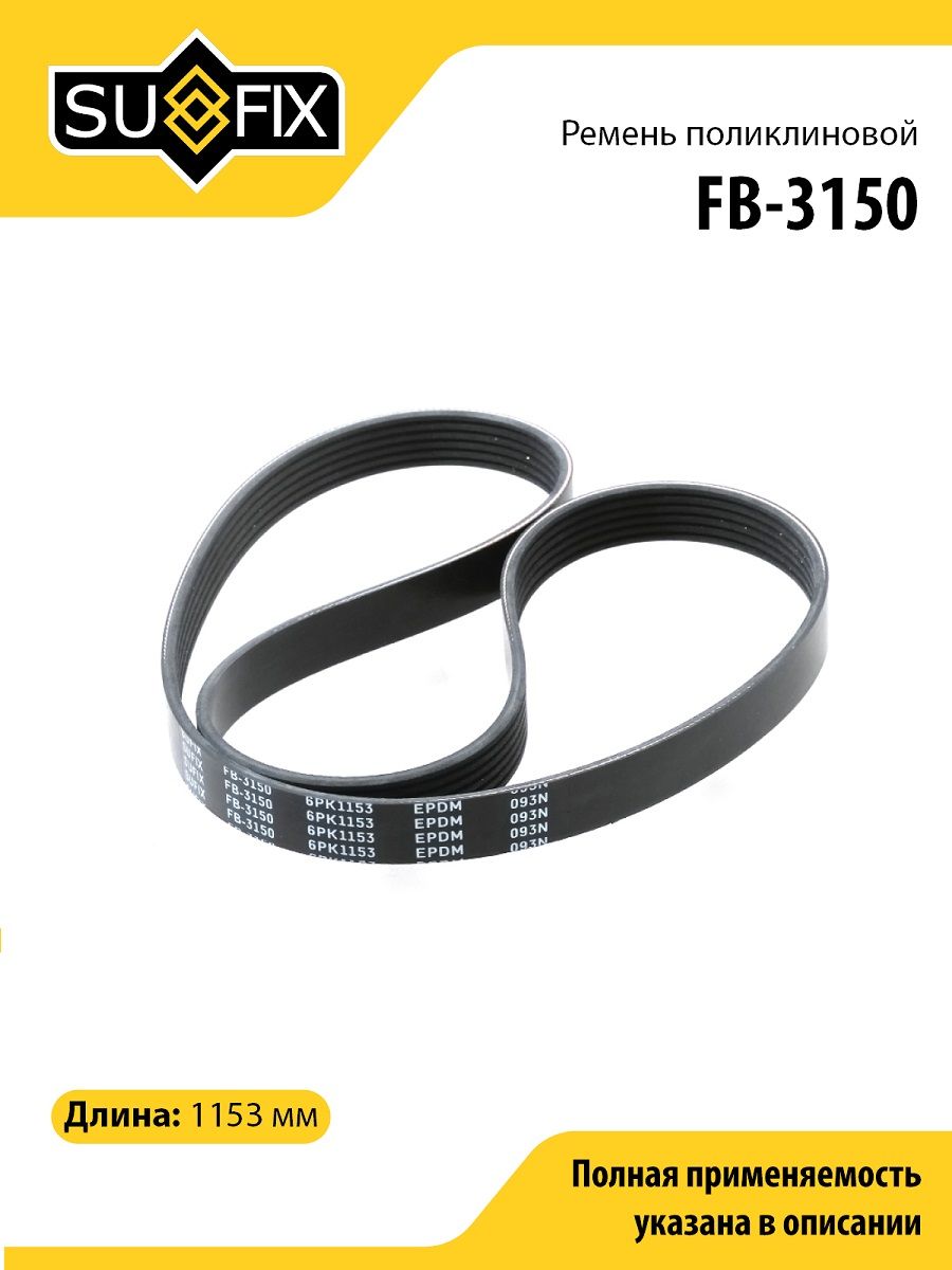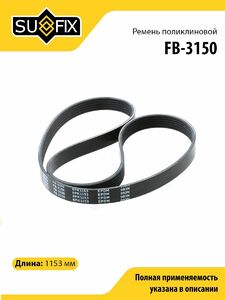 Ремень поликлиновой SUFIX FB-3150. Применение: CITROEN Jumper 1.9 td 94-02, FIAT Ducato 1.9D 94-02, PEUGEOT 307 2.0 00>, VW Caddy/Golf 1.4-1.6 91-97/Vento 1.4-1.8 91-98.