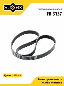 Ремень поликлиновой SUFIX FB-3157. Применение: GAZ Volga/Gazelle/Sobol(дв.406) без ГУР.