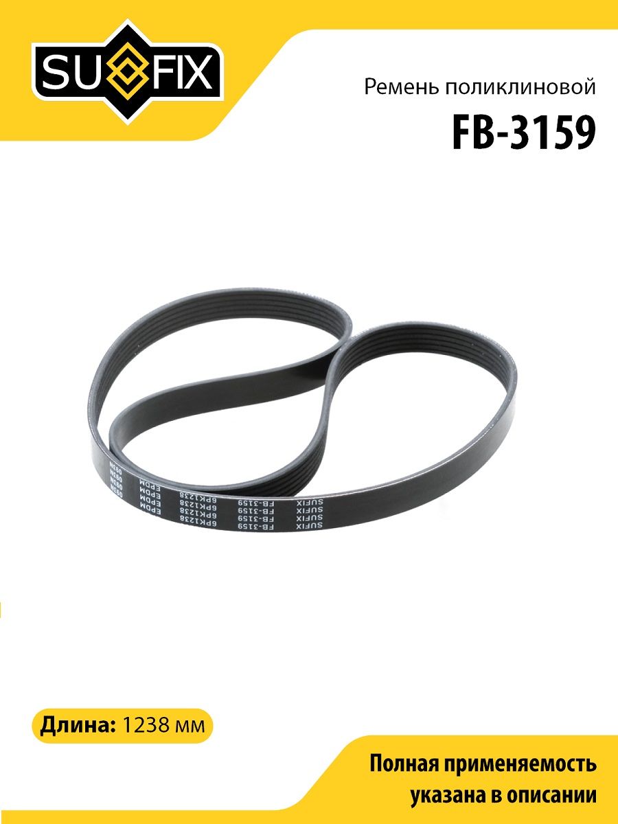 Ремень поликлиновой SUFIX FB-3159. Применение: AUDI A3 3.2 03>, RENAULT Laguna 2.0 95-01 / Safrane 2.0-3.0 92-00, TOYOTA Auris(E150) 1.4D 07>.