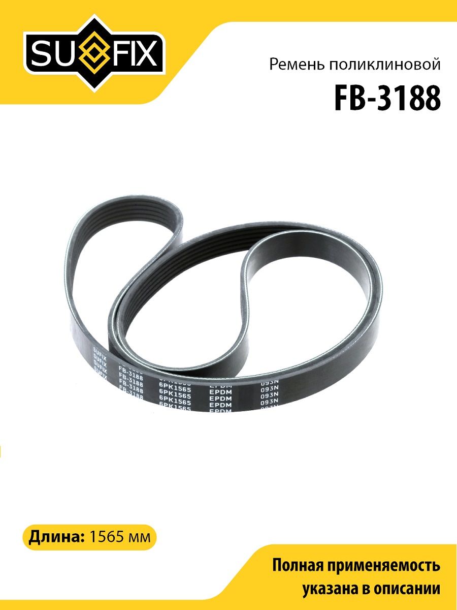 Ремень поликлиновой SUFIX FB-3188. Применение: CITROEN Berlingo/Xsara 1.4-1.6 00-05, PEUGEOT 206 SW 1.4-1.6 02>.