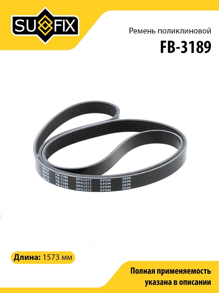 Ремень поликлиновой SUFIX FB-3189. Применение: AUDI A4 1.8-2.0 02> / A6 2.0 05>, FORD Galaxy 2.0-2.3 95-06, SUZUKI Grand Vitara 2.0 01>.