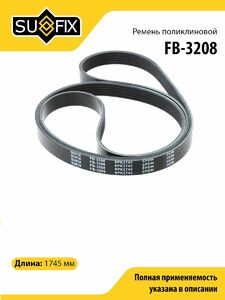 Ремень поликлиновой SUFIX FB-3208. Применение: CITROEN C-Crosser 2.2D 07> / Xantia 2.0D 99-03, FORD Galaxy 2.2D 08> / Mondeo 2.2D 08> / S-Max 2.2D 08> / Torneo Connect 1.8D 02> / Transit Connect 1.8D 02>, LAND ROVER Freelander 2.2D 06>, MITSUBISHI Outlander 2.2D 07>, PEUGEOT 4007 2.2D 07>, SKODA Fabia 1.0-1.4 99-02, VOLVO 850 2.0-2.5 91-96 / S70 2.0-2.5 97-00 / XC70 2.4T 97-02 .