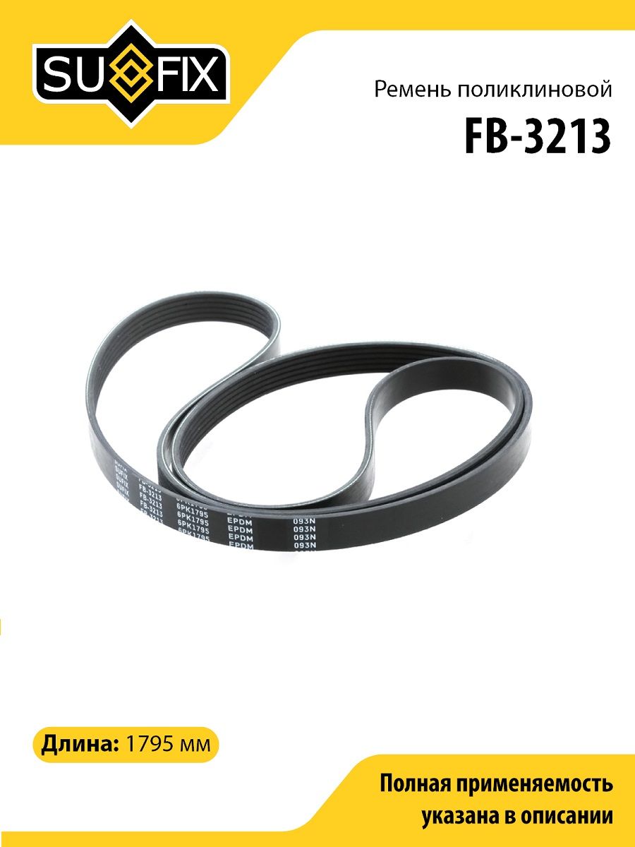 Ремень поликлиновой SUFIX FB-3213. Применение: BMW 1(E81-88) 1.6D-2.0D 07>, CHEVROLET Aveo 1.2-1.4 11>, MITSUBISHI Carisma 1.9D 00> / Space Star 1.9D 01>, OPEL Movano / Vivaro 1.9D-2.5D 00>, RENAULT Laguna 1.8-2.0 01> / Master / Trafic 1.9D-2.5D 00>, VOLVO S40 1.9D 00-03 / S80 2.5TD 99-06, ALFA ROMEO 145 1.9TD 99-01.