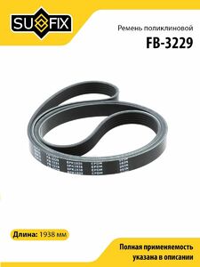Ремень поликлиновой SUFIX FB-3229. Применение: FORD Fiesta 1.3 95-02/Ka 1.3 96-08, INFINITI FX45 03-08, JEEP Grand Cherokee 3.6 10>, LEXUS GS300 93-97, TOYOTA Chaser/Crown/Aristo/Supra 3.0 >97.