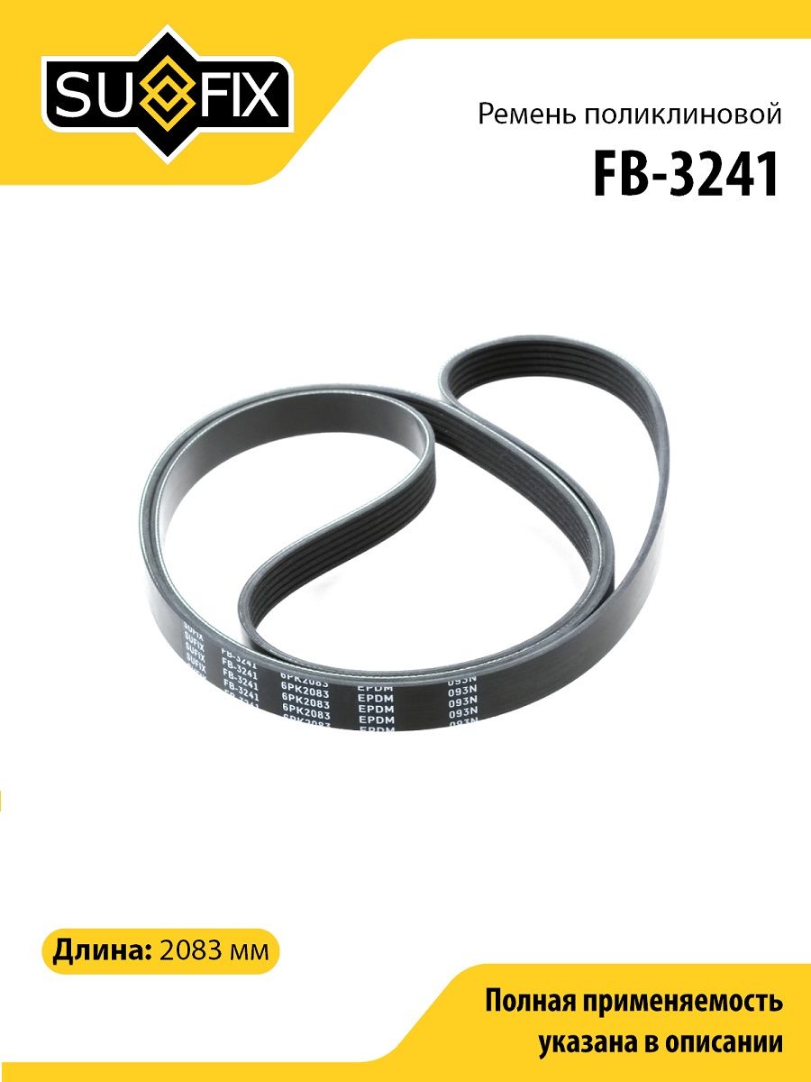 Ремень поликлиновой SUFIX FB-3241. Применение: BMW 3 / 5 / 6 / 7 / X3 / X5 2.0D-3.0TD 01>, JEEP Co mmander / Grand Cherokee 5.7 05>, FORD Mondeo 1.6-2.0 94-00, MERCEDES-BENZ C250D-36(W202) 93-00 / E250D-300D(W124) 95-00 / G290D-350D(W463) 91>, VW LT 2.5TD 01-06.