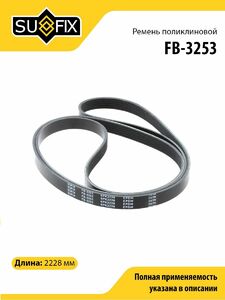 Ремень поликлиновой SUFIX FB-3253. Применение: FORD Mondeo III 1.8-2.0 00-07, LEXUS LS400 97-00, MERCEDES-BENZ C280(W202) 93-00 / E280-320(W210) 96-97 / S280(W140) 95-97, OPEL Omega A 2.6-3.0 >94, VW Transporter 4 2.5 90-03.