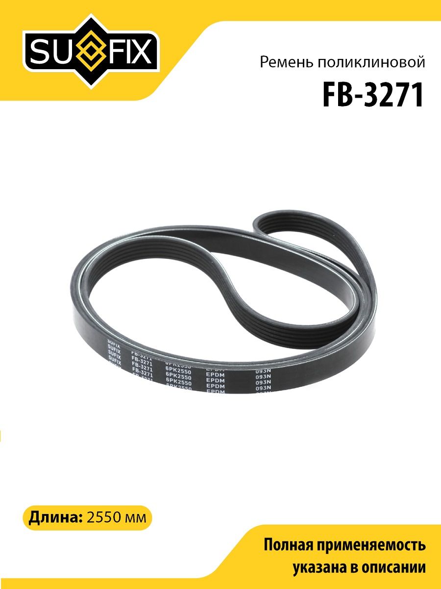 Ремень поликлиновой SUFIX FB-3271. Применение: DODGE Caliber 1.8-2.4T 06>, JEEP Compass / Patriot 2.4 06>, HYUNDAI Sonata(NF / YF) 2.0-2.4 08>, KIA Carens 2.0 06>, SAAB 9000 2.0-2.3T >98.
