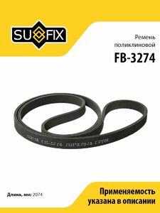 Ремень поликлиновой SUFIX FB-3274. Применение: AUDI Q7(4L) 3.6 06-10, PORSCHE Cayenne I-II 3.2-3.6 03>, VW Touareg(7L/7P) 3.2-3.6 02>.