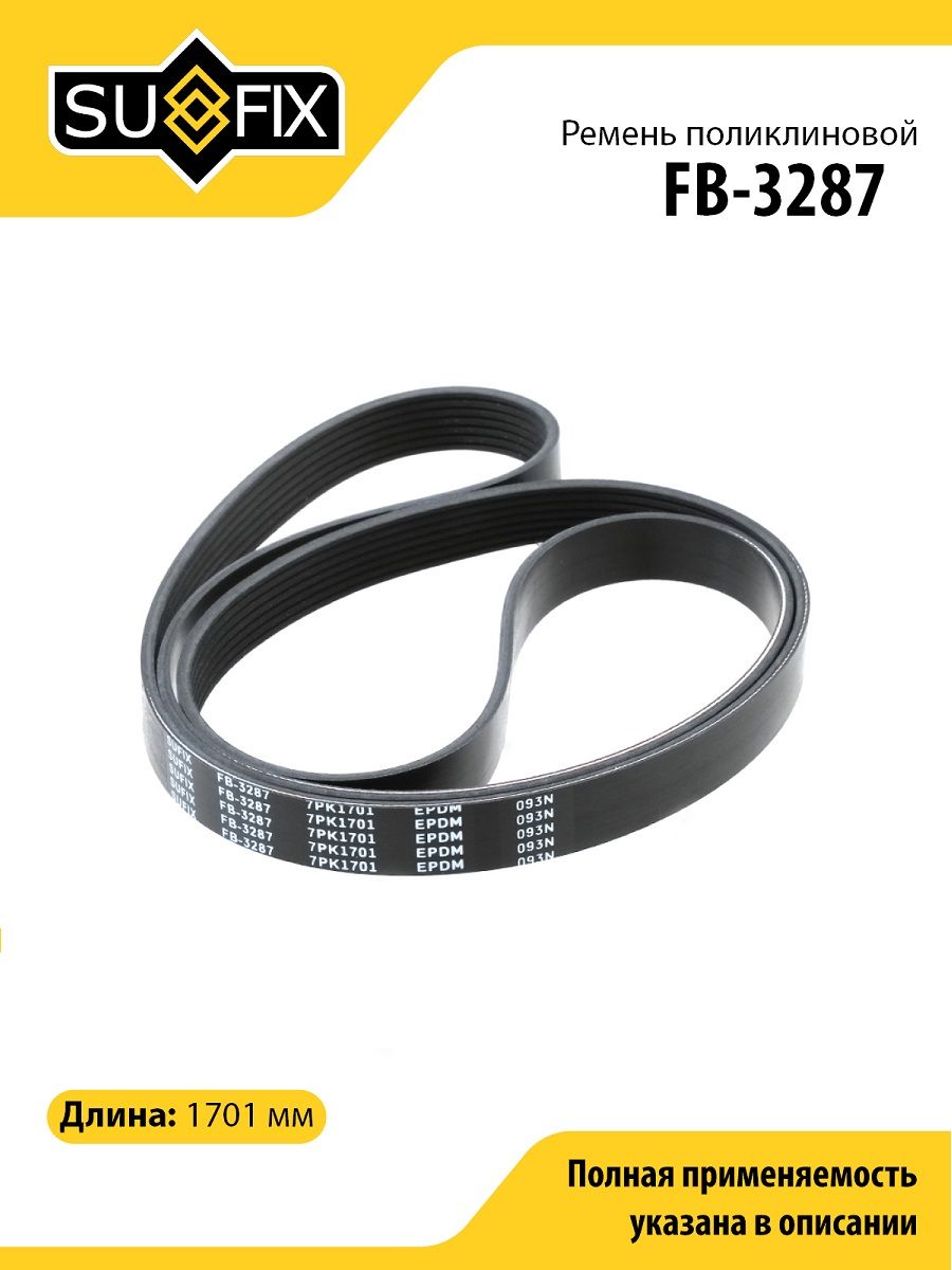 Ремень поликлиновой SUFIX FB-3287. Применение: NISSAN Murano(Z51) 3.5 08> / Qashqai 2.0D 07> / Teana(J32) 2.5-3.5 08> / X-Trail(T31) 2.0D 07>.