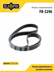 Ремень поликлиновой SUFIX FB-3296. Применение: NISSAN Qashqai(J10) 1.6 07-13, HONDA CR-V III 2.2D 07>.