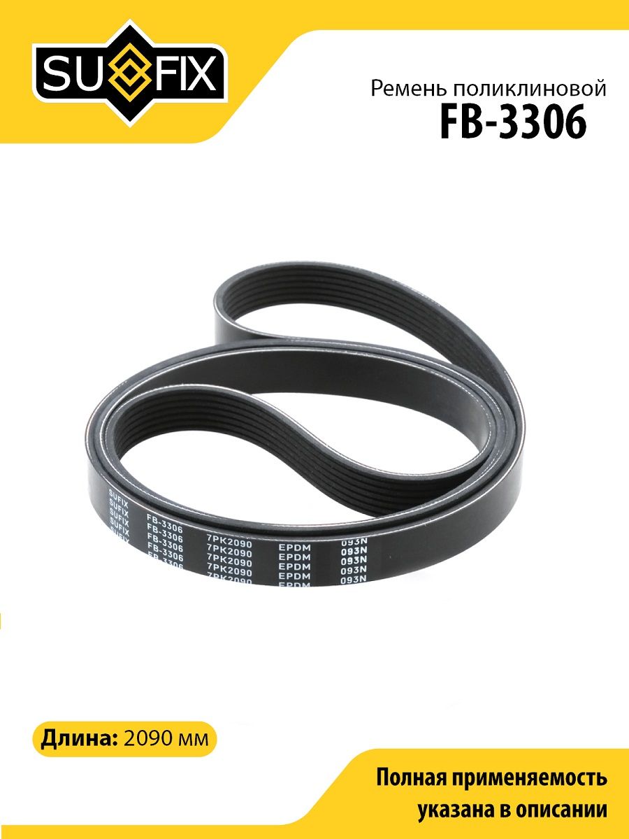 Ремень поликлиновой SUFIX FB-3306. Применение: LEXUS RX350 06>, TOYOTA Camry 3.5 06>.