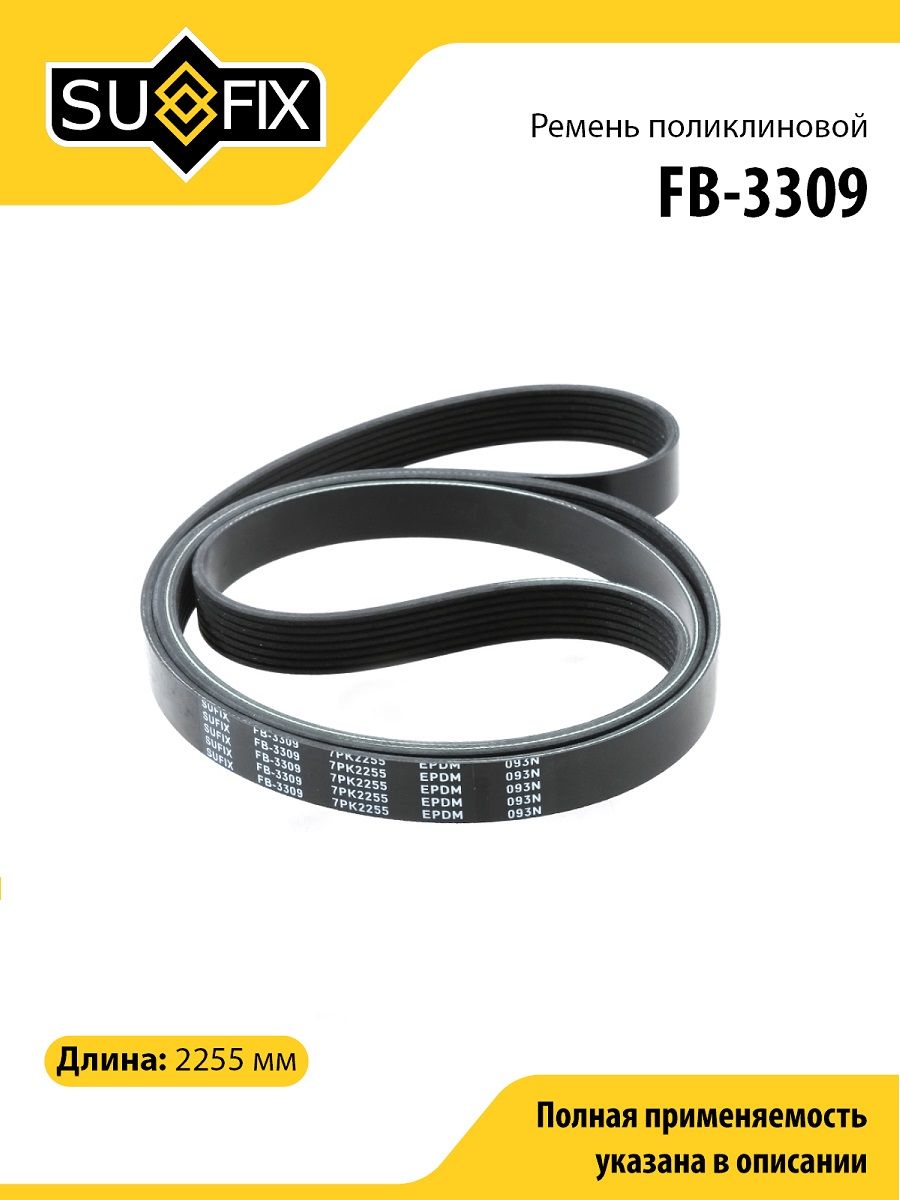 Ремень поликлиновой SUFIX FB-3309. Применение: KIA Sorento 2.5TD 06>, LAND ROVER Range Rover 3.9-4.3 >94 / Discovery 3.9 93-98.