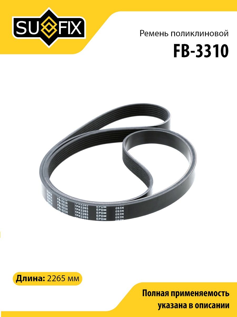 Ремень поликлиновой SUFIX FB-3310. Применение: HONDA Accord VIII 2.2D 03> / CR-V 2.2D 05>, HYUNDAI H-1 2.5D 08>, JEEP Grand Cherokee 5.2-5.9 92-99, KIA Sorento 2.5D 02>.