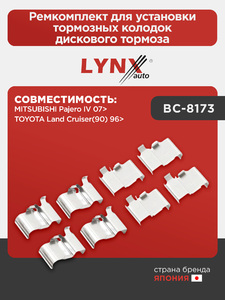 Ремкомплект для установки тормозных колодок дискового тормоза LYNXauto BC-8173. Для: Mitsubishi, Митсубиси, Pajero(Паджеро) IV 07>, Toyota, Тойота, Land Cruiser(ЛэндКрузер)(90) 96>.