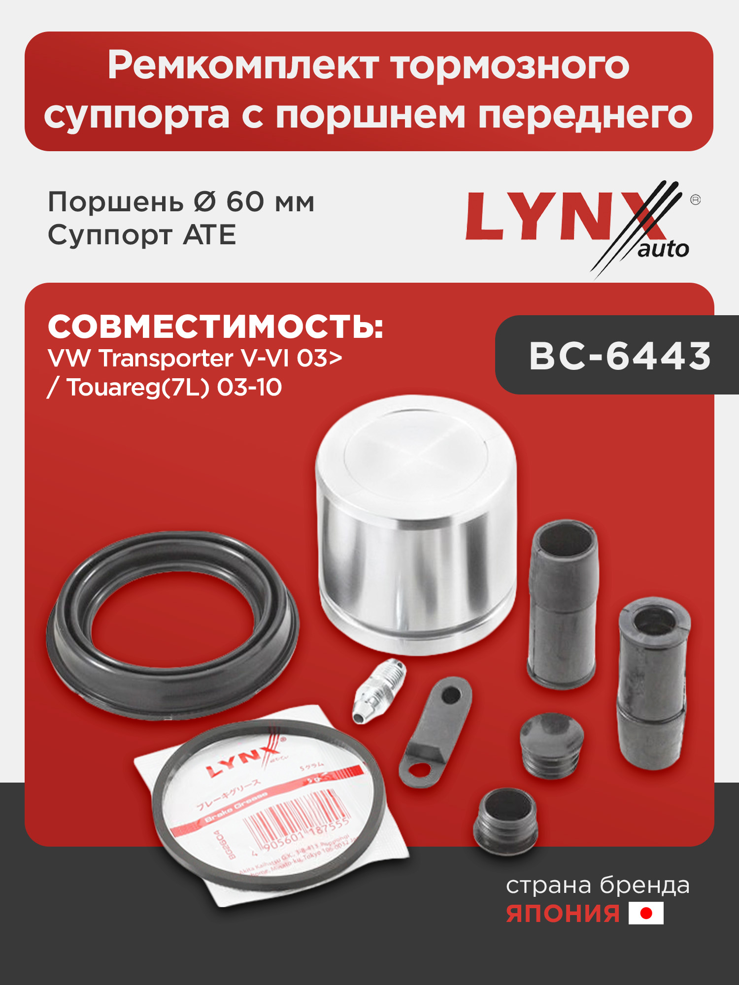 Ремкомплект тормозного суппорта с поршнем переднего (поршень Ø 60 mm, суппорт ATE) LYNXauto BC-6443. Для: VW, Фольксваген, Transporter(Транспортер) V-VI 03> / Touareg(Таурег)(7L) 03-10