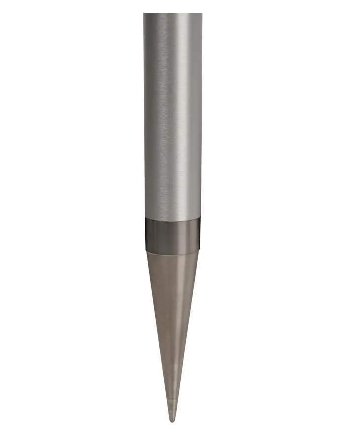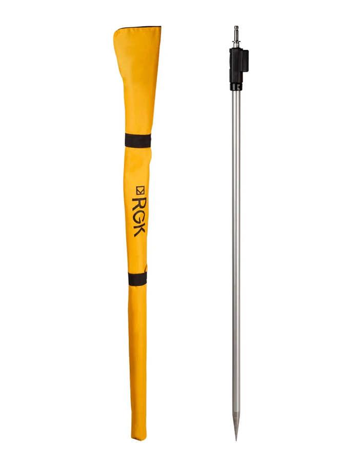 Устройство выполнено из алюминиевого сплава и представляет собой трубчатую двухсекционную раздвижную конструкцию с внешним диаметром 25 мм. Длина вехи RGK CLS11 в сложенном положении составляет 1,24 м, а в разложенном при максимальном вылете – 2,15 м. Наружная секция в верхней части снабжена рукояткой для удобства удержания. Закрепленный снизу изделия заостренный наконечник упрочнен методом термической обработки для повышения износостойкости.