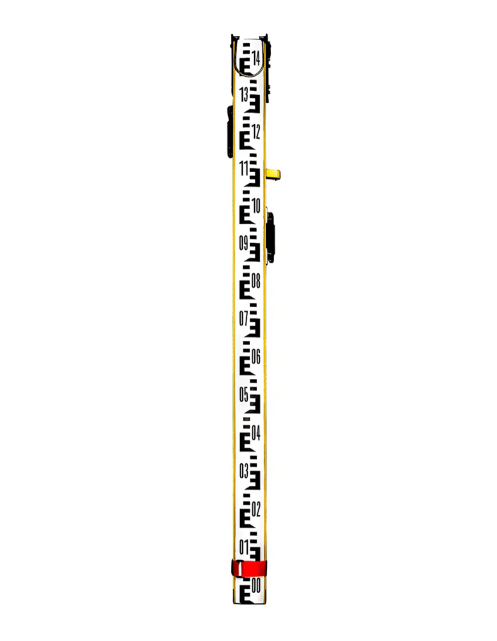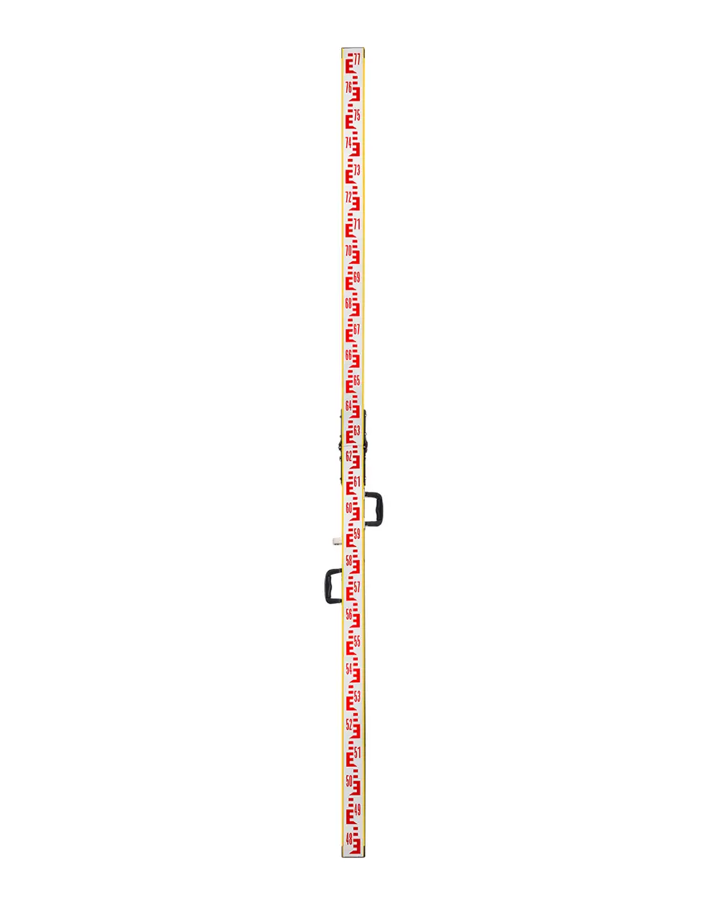 Нивелирная рейка снабжена с лицевой и тыльной стороны стандартными шашечными E-шкалами с 10-сантиметровыми интервалами, основной и дополнительной. Они выполнены разными цветами, черно-белым и красно-белым соответственно, и различаются цифровой маркировкой дециметровых делений. Разница пяток позволяет повысить точность определения превышений при проложении нивелирных ходов, последовательно снимая отсчеты с основной и дополнительной шкалы передней и задней рейки, с определением среднего показателя. Так как на красной шкале начало отсчетов не совпадает с нулевым положением, то при выполнении расчетов исключается вероятность субъективных ошибок из-за неосознанной подгонки результатов.