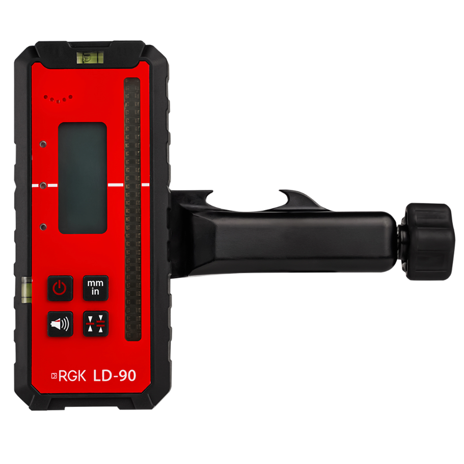 Приемник с кронштейном для монтажа на нивелирную рейку входят в комплект, благодаря чему вы сразу сможете начать работать с лазерным нивелиром. Продвинутая модель приемника позволяет переключаться между тремя режимами точности - чем больше погрешность, тем проще будет поймать луч на большом расстоянии.
