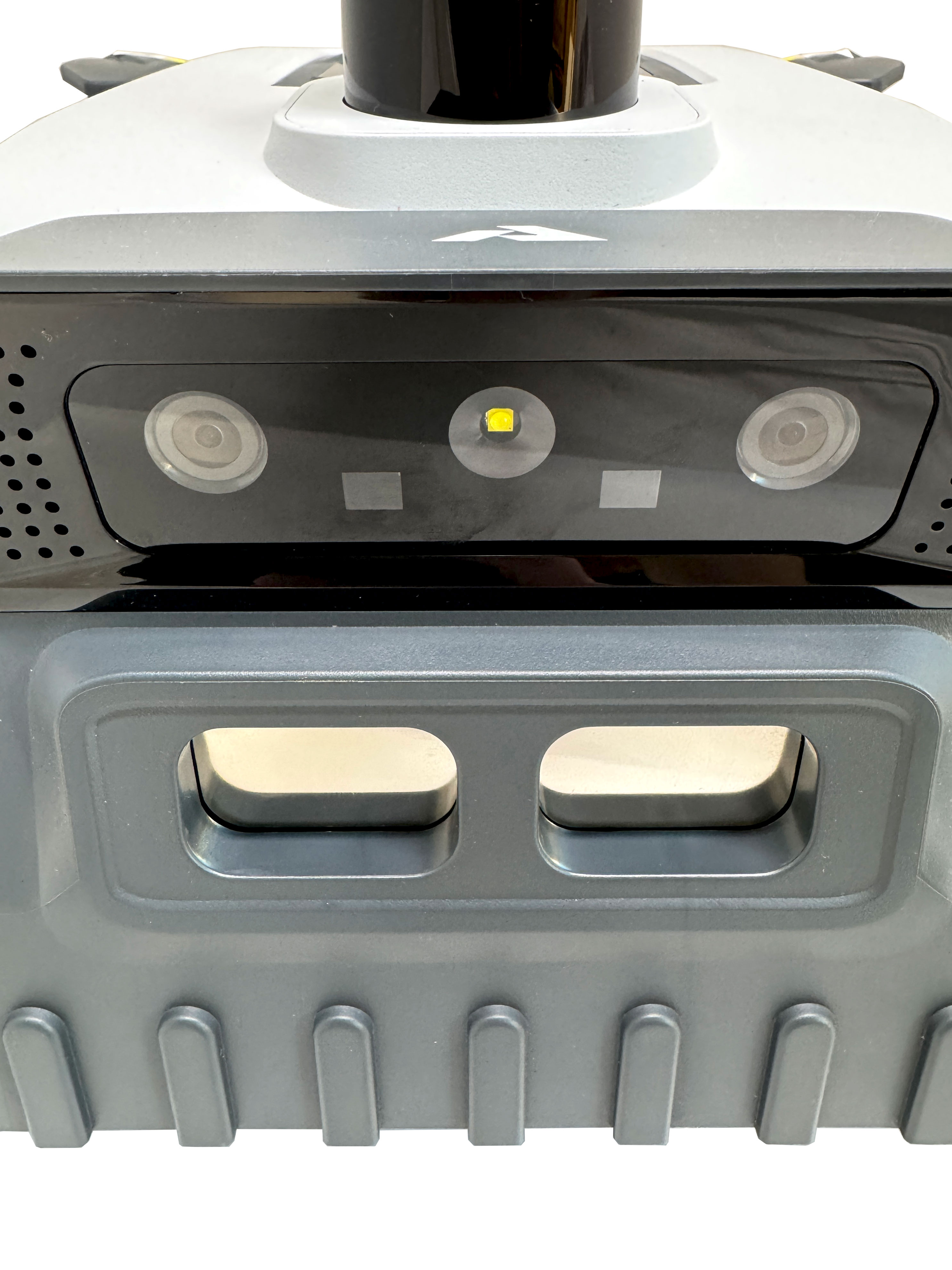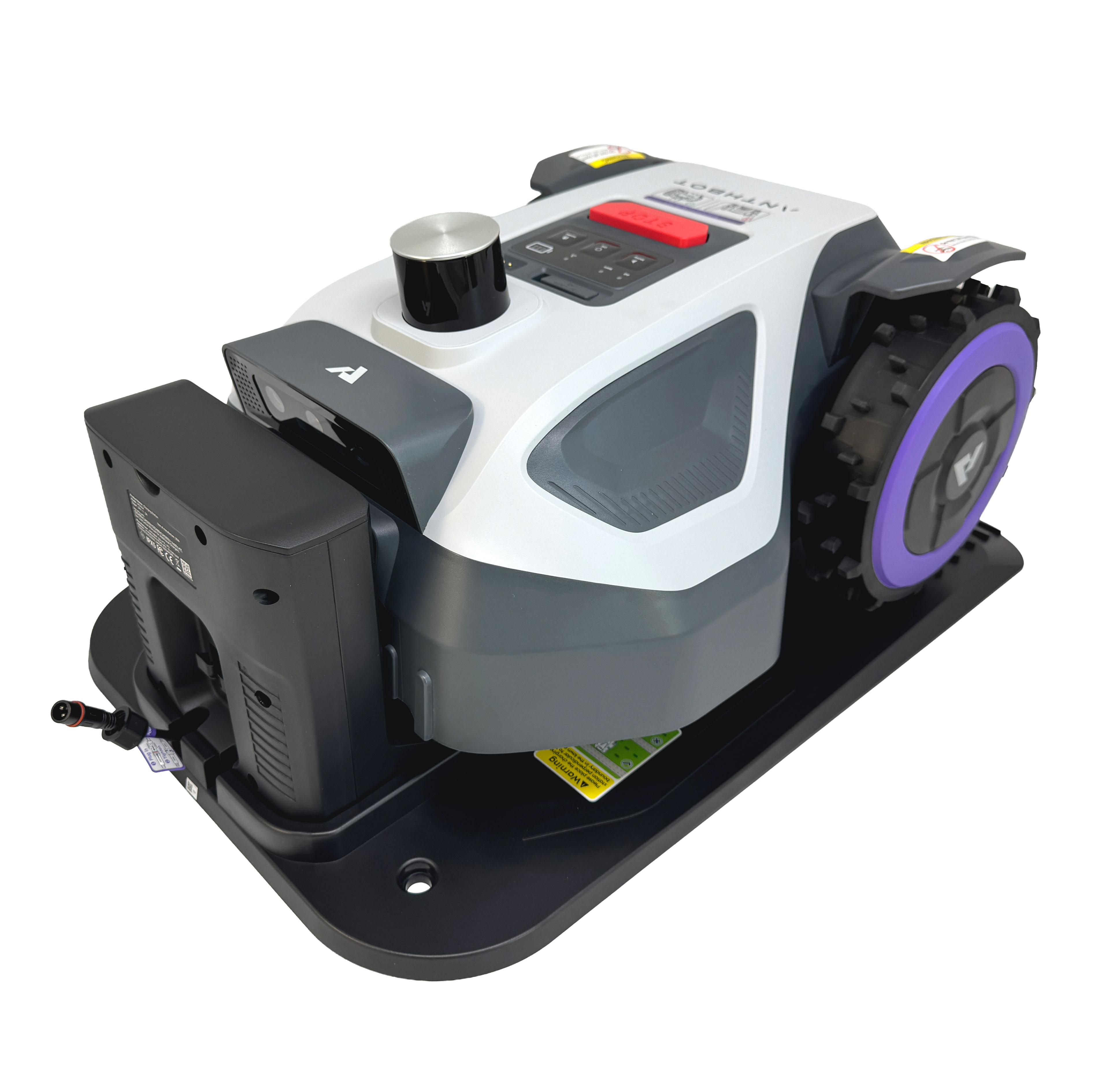 Его уникальность — в мощной комбинации 360-градусного LiDAR-лазера и двух камер компьютерного зрения, что обеспечивает навигацию с сантиметровой точностью без использования GPS-сигнала, проводов-ограничителей или RTK-станций.