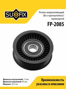 Ролик направляющий (Без кронштейна)/приводной SUFIX FP-2085. Применение: MERCEDES-BENZ E350D(W212) 11>/GL320D-350D(X164) 06>/ML280D-350D(W164) 05>/S320-350D(W221) 05>/R280D-350D(W251) 06>.